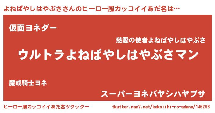 | ファンタジー風あだ名 | 『エターナルヨネバヤシハヤブサー』 |