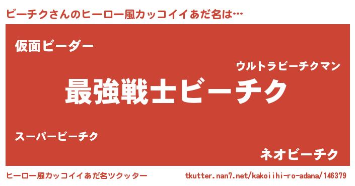 | 男性向けラノベタイトル風あだ名 | 『Re:ビーチクから始める異世界生活』 |