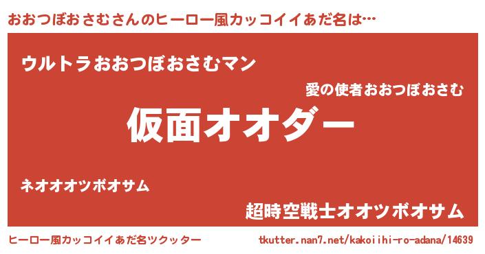 | 男性向けラノベタイトル風あだ名 | 『魔弾の王とおおつぼおさむ』 |
