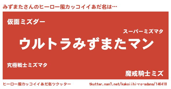 | 男性向けラノベタイトル風あだ名 | 『うちのみずまたが世界を掌握している!』 |