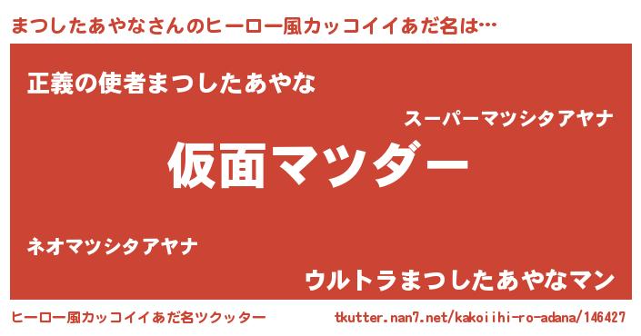 | 男性向けラノベタイトル風あだ名 | 『転生したらまつしたあやなだった件』 |