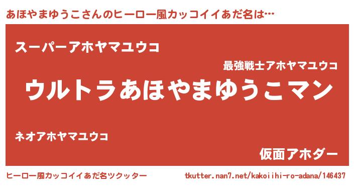 | 男性向けラノベタイトル風あだ名 | 『やはりあほやまゆうこの青春ラブコメはまちがっている 』 |