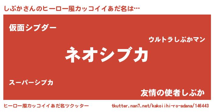 | 男性向けラノベタイトル風あだ名 | 『しぶかに滅ぼされるだけの簡単なお仕事です』 |