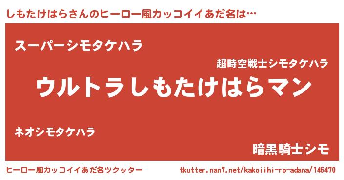 | 意味不明あだ名 | 『しもたけはらフォーエバー』 |