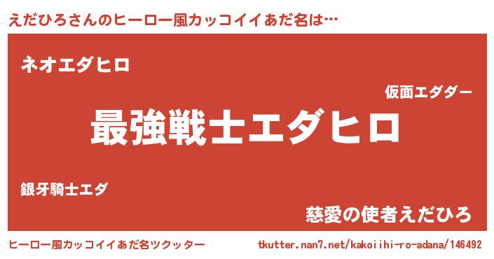 | 男性向けラノベタイトル風あだ名 | 『Re:えだひろから始める異世界生活』 |