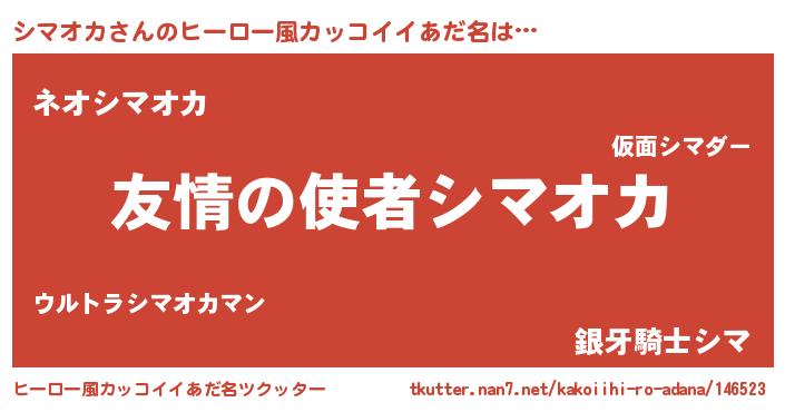 | 男性向けラノベタイトル風あだ名 | 『おまえをオタクにしてやるから、俺をシマオカにしてくれ! 』 |
