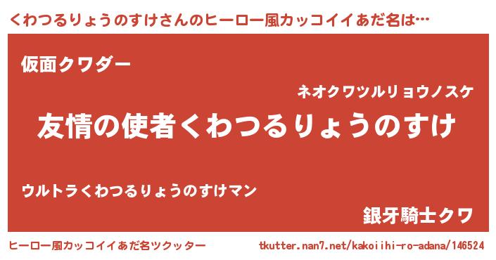 | 男性向けラノベタイトル風あだ名 | 『緋弾のクワツルリョウノスケ』 |