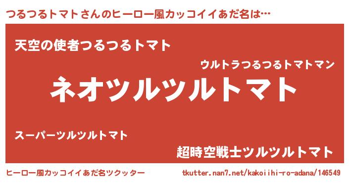 | 男性向けラノベタイトル風あだ名 | 『つるつるトマトという概念が存在しない退屈な世界 』 |