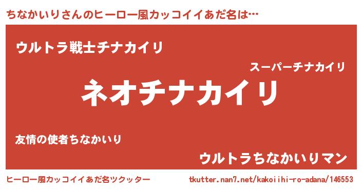 | 男性向けラノベタイトル風あだ名 | 『ちなかいりという概念が存在しない退屈な世界 』 |