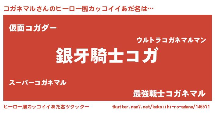 | 男性向けラノベタイトル風あだ名 | 『コガネマルの嫁は女の子じゃないと思った?』 |