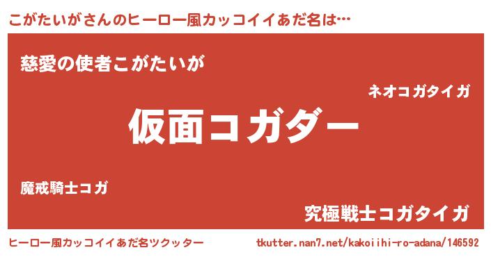 | 男性向けラノベタイトル風あだ名 | 『この素晴らしい世界にこがたいがを!』 |