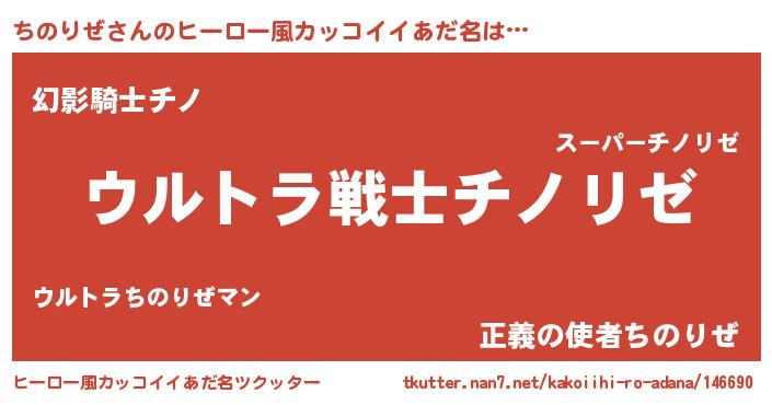 | 女子向けラノベタイトル風あだ名 | 『ちのりぜなんてお断りですっ。』 |