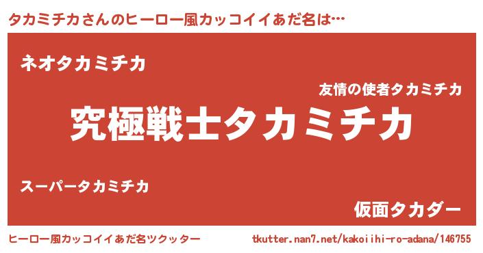 | 男性向けラノベタイトル風あだ名 | 『Re:タカミチカから始める異世界生活』 |