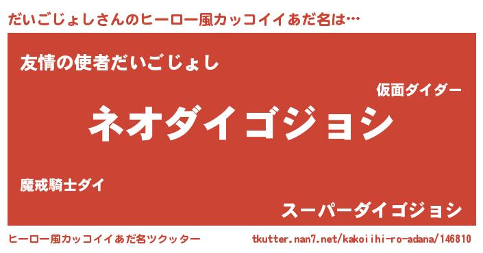 | 男性向けラノベタイトル風あだ名 | 『だいごじょし~年齢イコール彼女いない歴の魔法使い~』 |