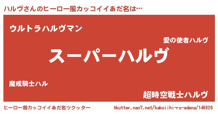 | ファンタジー風あだ名 | 『ハルフェル』『エターナルハルヴー』 |