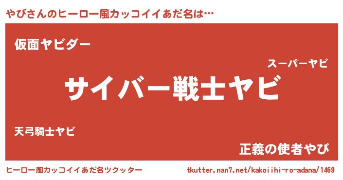 | 男性向けラノベタイトル風あだ名 | 『魔法科高校のやび』『魔弾の王とやび』 |
