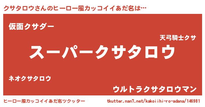 | 男性向けラノベタイトル風あだ名 | 『クサタロウの憂鬱』 |