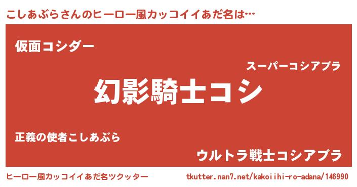 | 男性向けラノベタイトル風あだ名 | 『こしあぶらの嫁は女の子じゃないと思った?』 |