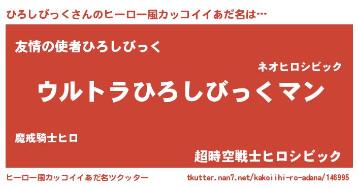 | 女子向けラノベタイトル風あだ名 | 『ひろしびっくの雑貨屋さん』 |