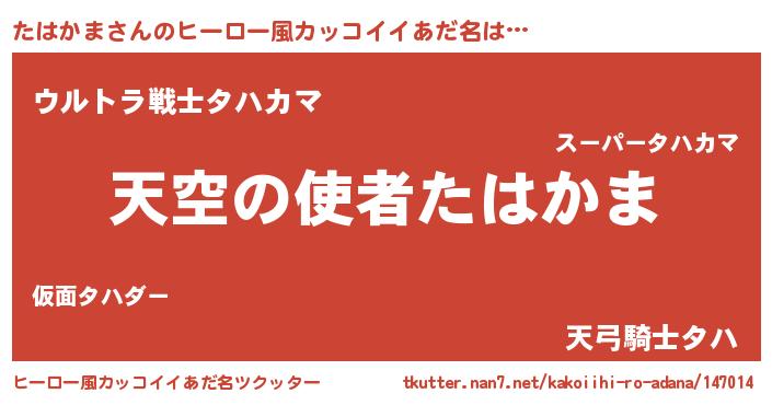| 女子向けラノベタイトル風あだ名 | 『死神たはかまの再婚』『闇のたはかま』 |