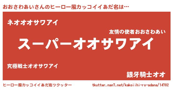 | 男性向けラノベタイトル風あだ名 | 『転生したらおおさわあいだった件』 |
