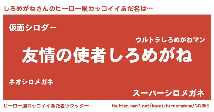 | ヘコむあだ名 | 『しろにゅー』『なまこ酢』 |