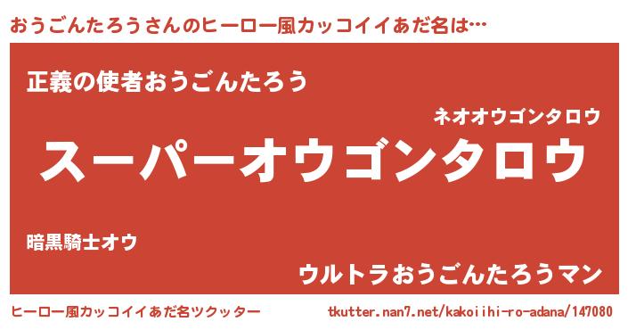 | 男性向けラノベタイトル風あだ名 | 『オウゴンタロウアートオンライン』 |