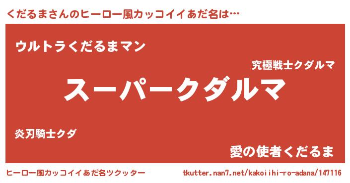| ファンタジー風あだ名 | 『クダフェル』『エターナルクダルマー』 |