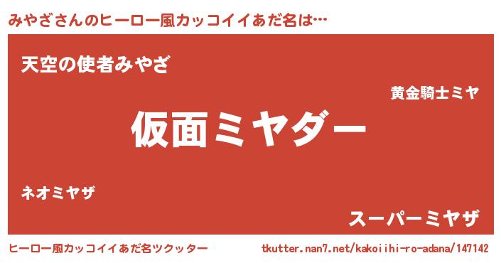| 男性向けラノベタイトル風あだ名 | 『この素晴らしい世界にみやざを!』 |