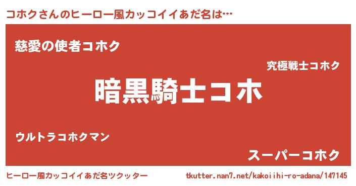 | 男性向けラノベタイトル風あだ名 | 『コホクスレイヤー』『コホクの憂鬱』 |