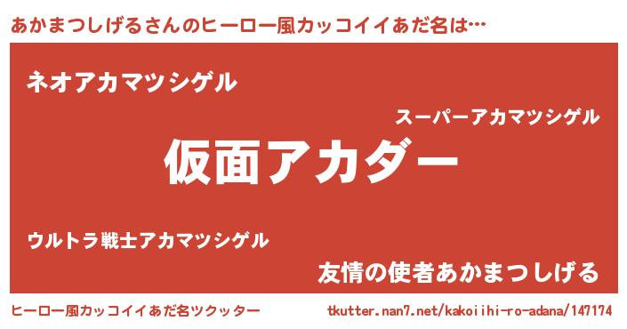 | 男性向けラノベタイトル風あだ名 | 『この素晴らしい世界にあかまつしげるを!』 |