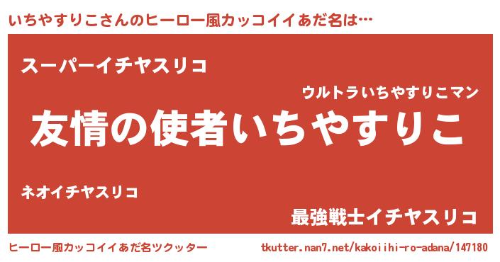 | 男性向けラノベタイトル風あだ名 | 『おまえをオタクにしてやるから、俺をいちやすりこにしてくれ! 』 |