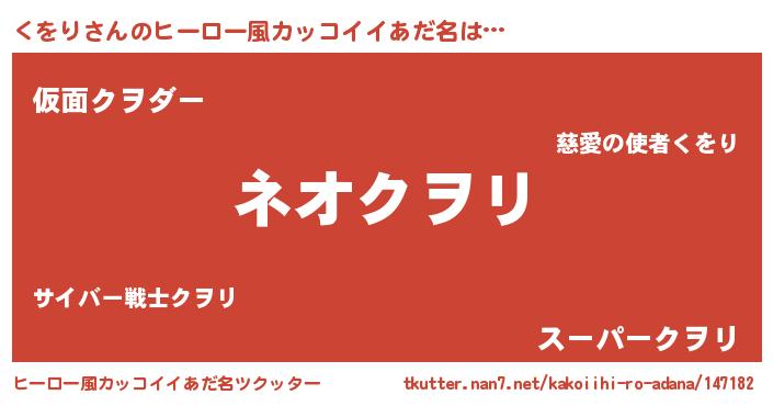 | 胡散臭い通販商品みたいなあだ名 | 『絶対に幸福をもたらす水素水…その名も「くをり」』 |