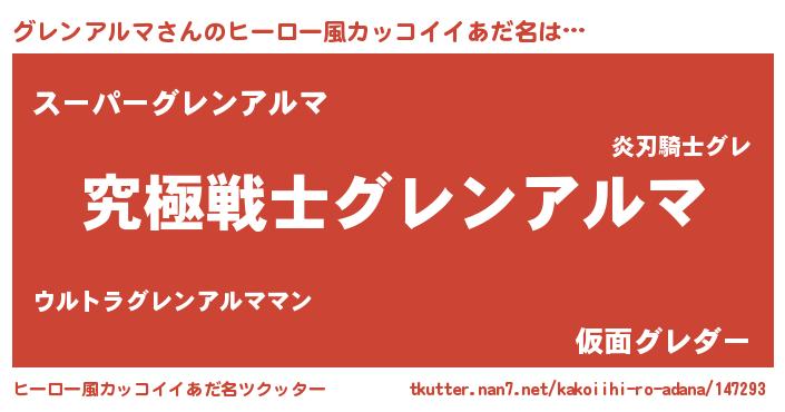 | 男性向けラノベタイトル風あだ名 | 『グレンアルマに滅ぼされるだけの簡単なお仕事です』 |