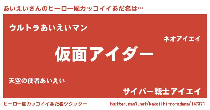 | 男性向けラノベタイトル風あだ名 | 『この素晴らしい世界にあいえいを!』 |