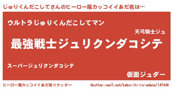 | 男性向けラノベタイトル風あだ名 | 『Re:じゅりくんだこしてから始める異世界生活』 |