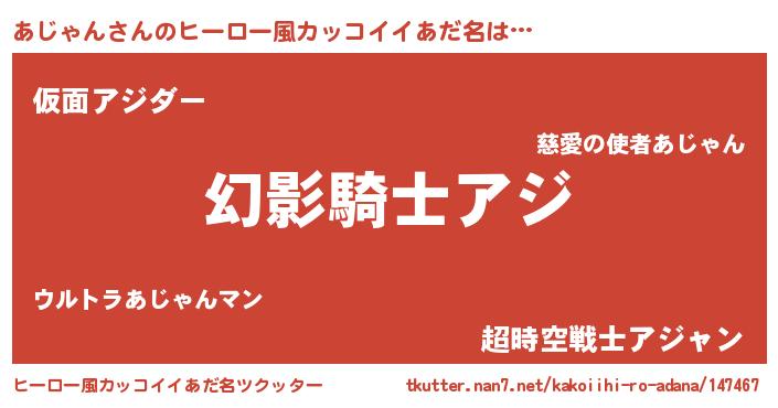 | 女子向けラノベタイトル風あだ名 | 『あじゃんの卵を拾いまして』 |