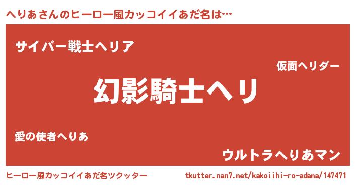 | 意味不明あだ名 | 『とにかく怪しいへりあ』『自称へりあ』 |