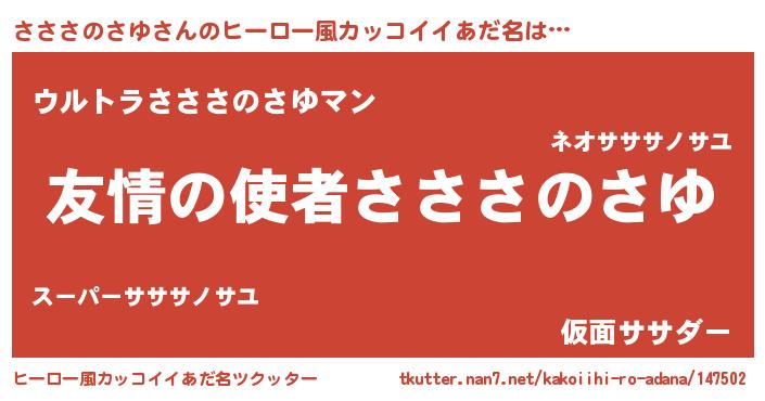| 伝説のあだ名 | 『人々から恐れられる錬金術士さささのさゆ』 |