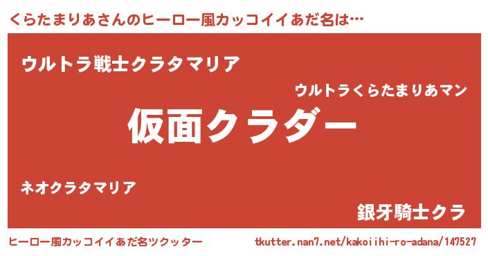 | 男性向けラノベタイトル風あだ名 | 『この素晴らしい世界にくらたまりあを!』 |