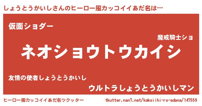 | 意味不明あだ名 | 『永久保存しょうとうかいし』 |
