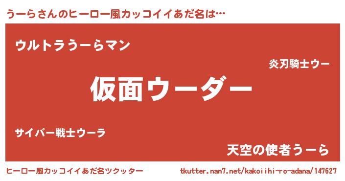 | 男性向けラノベタイトル風あだ名 | 『転生したらうーらだった件』 |