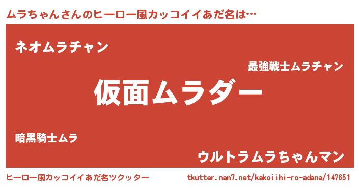 | 女子向けラノベタイトル風あだ名 | 『乙女ゲームの破滅フラグしかない悪役ムラちゃんに転生してしまった…』 |