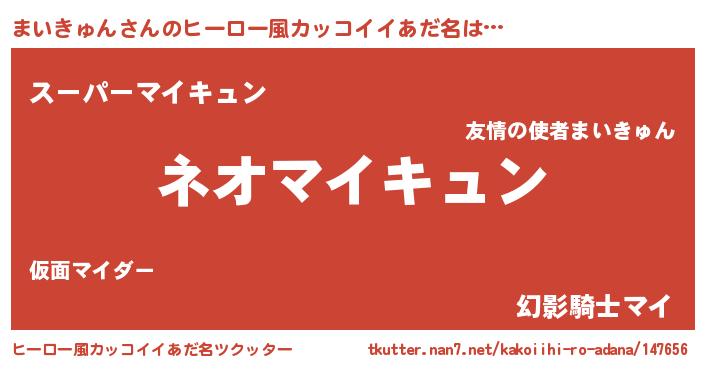 | 伝説のあだ名 | 『古より伝わる暗殺者まいきゅん』 |