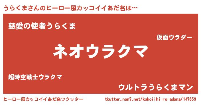 | ヘコむあだ名 | 『うらくま(笑)』『豆乳』『うらお』 |
