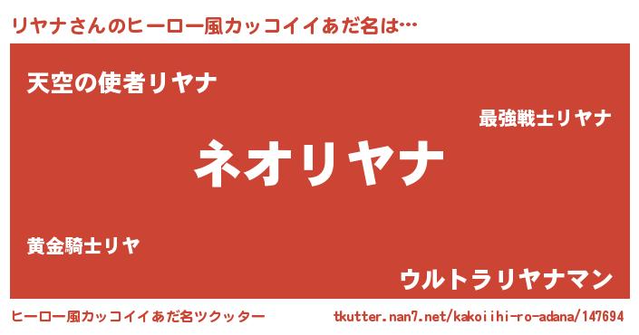 | 女子向けラノベタイトル風あだ名 | 『異世界で失敗しない100のリヤナ』 |