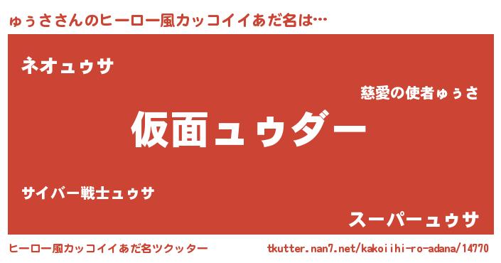 | 男性向けラノベタイトル風あだ名 | 『魔弾の王とゅぅさ』 |