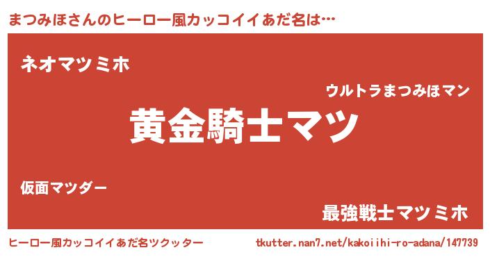 | ポケモン風あだ名 | 『マツキング』『ヒマツミホ』 |