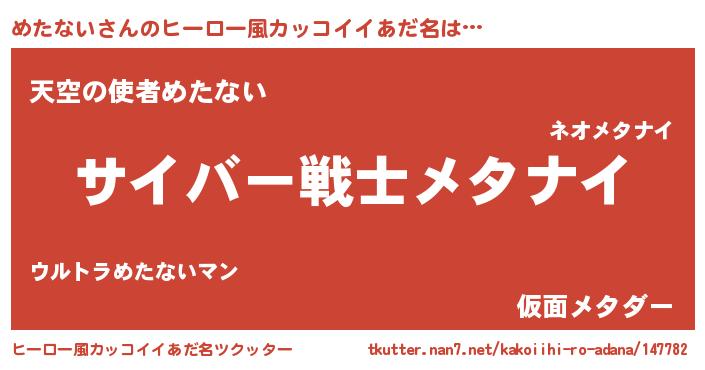 | 意味不明あだ名 | 『自称めたない』『永久保存めたない』 |