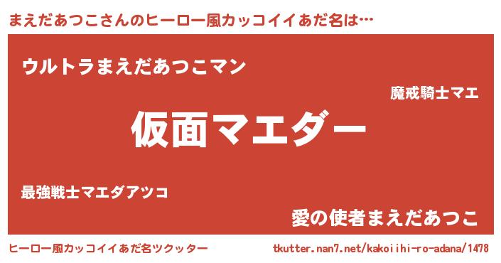 | 男性向けラノベタイトル風あだ名 | 『この素晴らしい世界にまえだあつこを!』 |